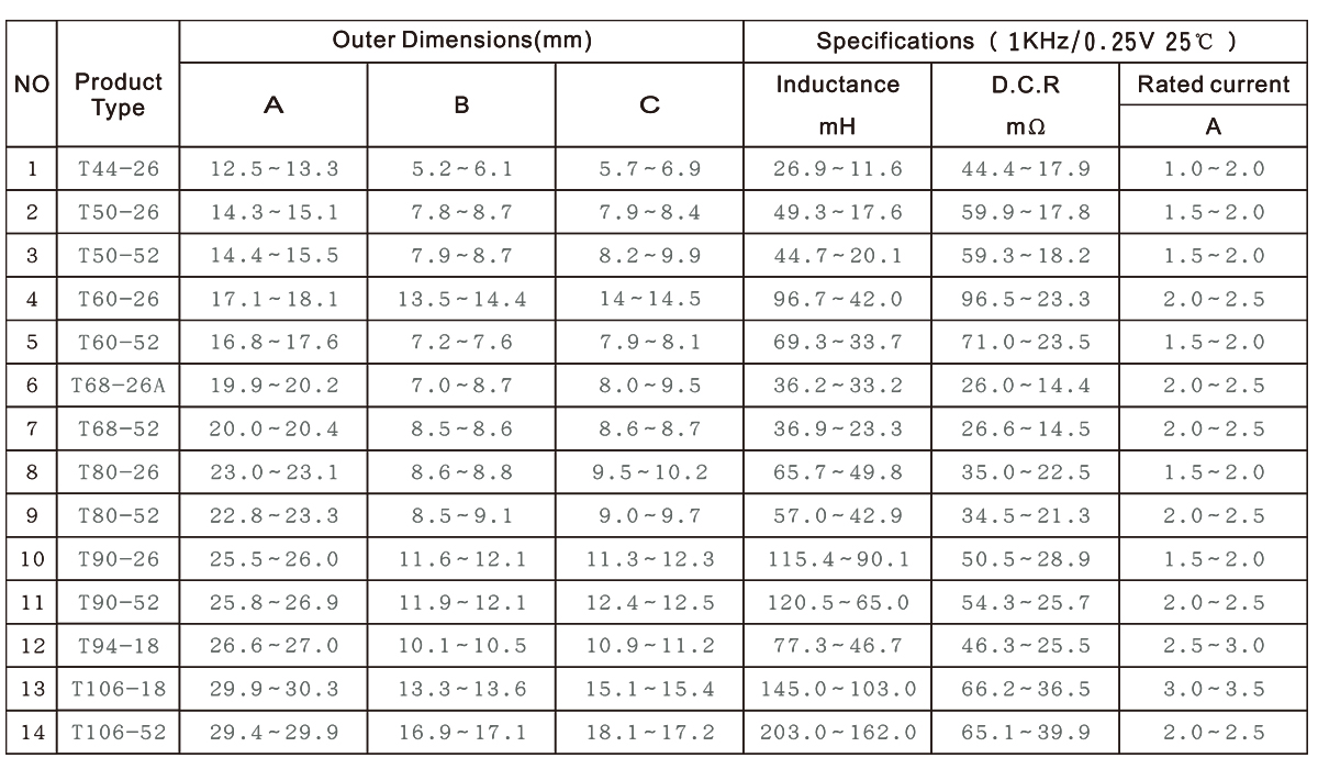 鐵粉芯電感磁芯它是由100%的鐵粉添加有機(jī)或無(wú)機(jī)粘合劑壓制而成,其偏置性能在所有粉末磁芯材料中最高,市場(chǎng)上通常稱之為Iron Powder 或鐵粉芯磁環(huán)。由于生產(chǎn)工藝較其他幾種簡(jiǎn)單,原材料最便宜,且具有較好的磁性能,是四大系列金屬軟磁粉芯中使用量最大、最為廣泛的一種。從μe10的-2材質(zhì)鐵粉芯到μe75的-26、-52等各種材質(zhì)的鐵粉芯,適用于各種不同的使用場(chǎng)合。還有用鐵氧體摻入適量做的復(fù)合鐵粉芯,具有較高的導(dǎo)磁率,在某些使用場(chǎng)合可以彌補(bǔ)鐵粉芯導(dǎo)磁率較低的缺陷。