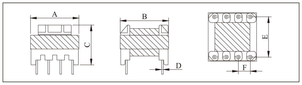 EF型磁芯相比EE型磁芯中柱面積稍大。它們被廣泛用于開關(guān)電源和多種電子線路中,具有適用范圍廣、工作頻率高、工作電壓范圍寬、輸出功率大、熱穩(wěn)定性能高等特點(diǎn)。EF型變壓器常用型號(hào)有EF-12.6,EF-16,EF-20,EF-25等。