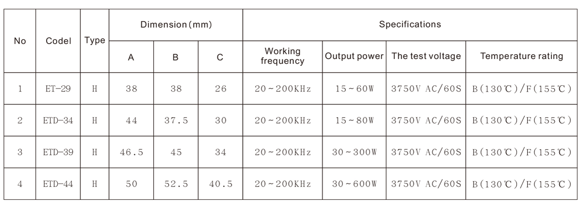 ETD磁芯變壓器是經(jīng)濟(jì)性的選擇,其圓形中柱可以減小繞組電阻,而且專門針對(duì)提高電源變壓器效率而優(yōu)化了尺寸。